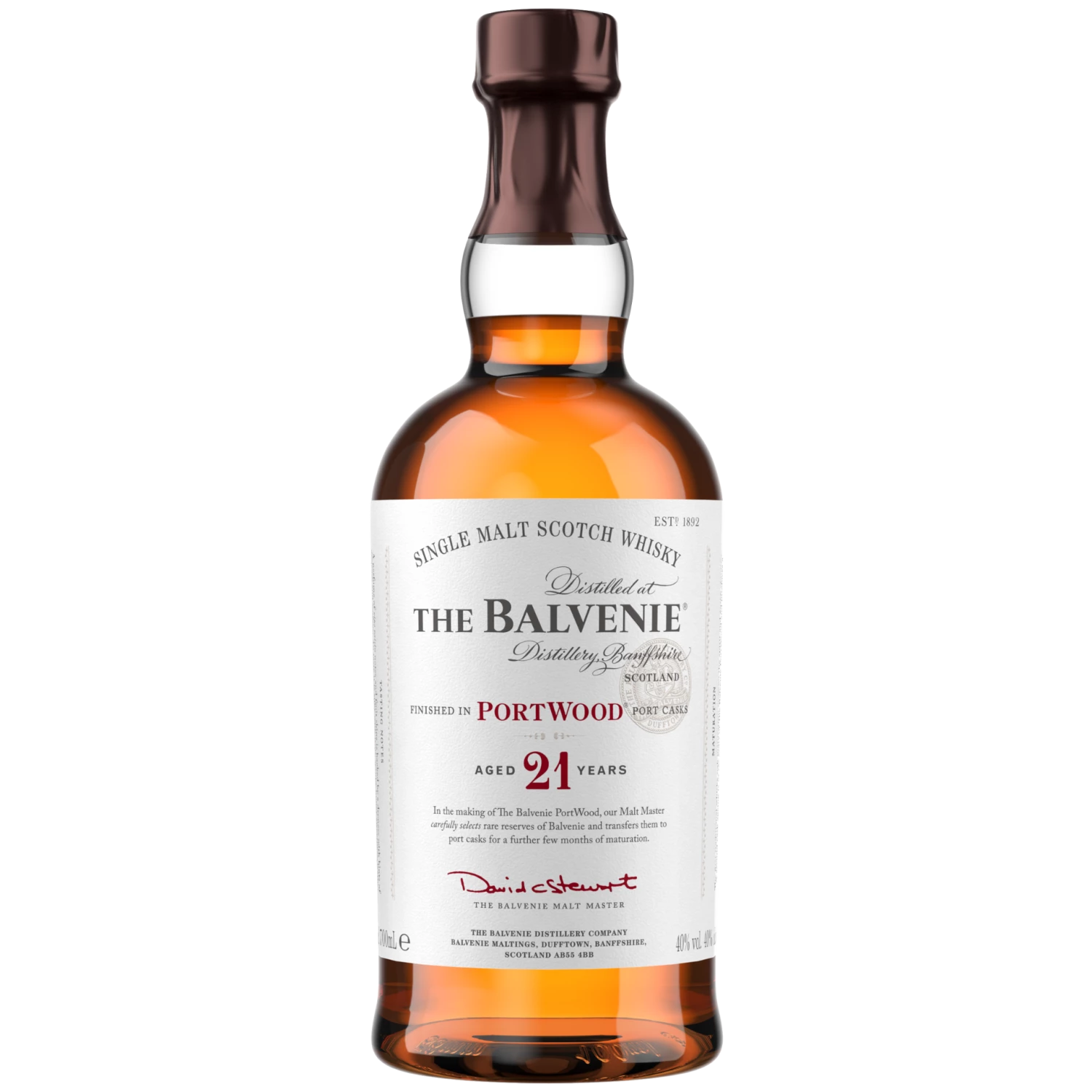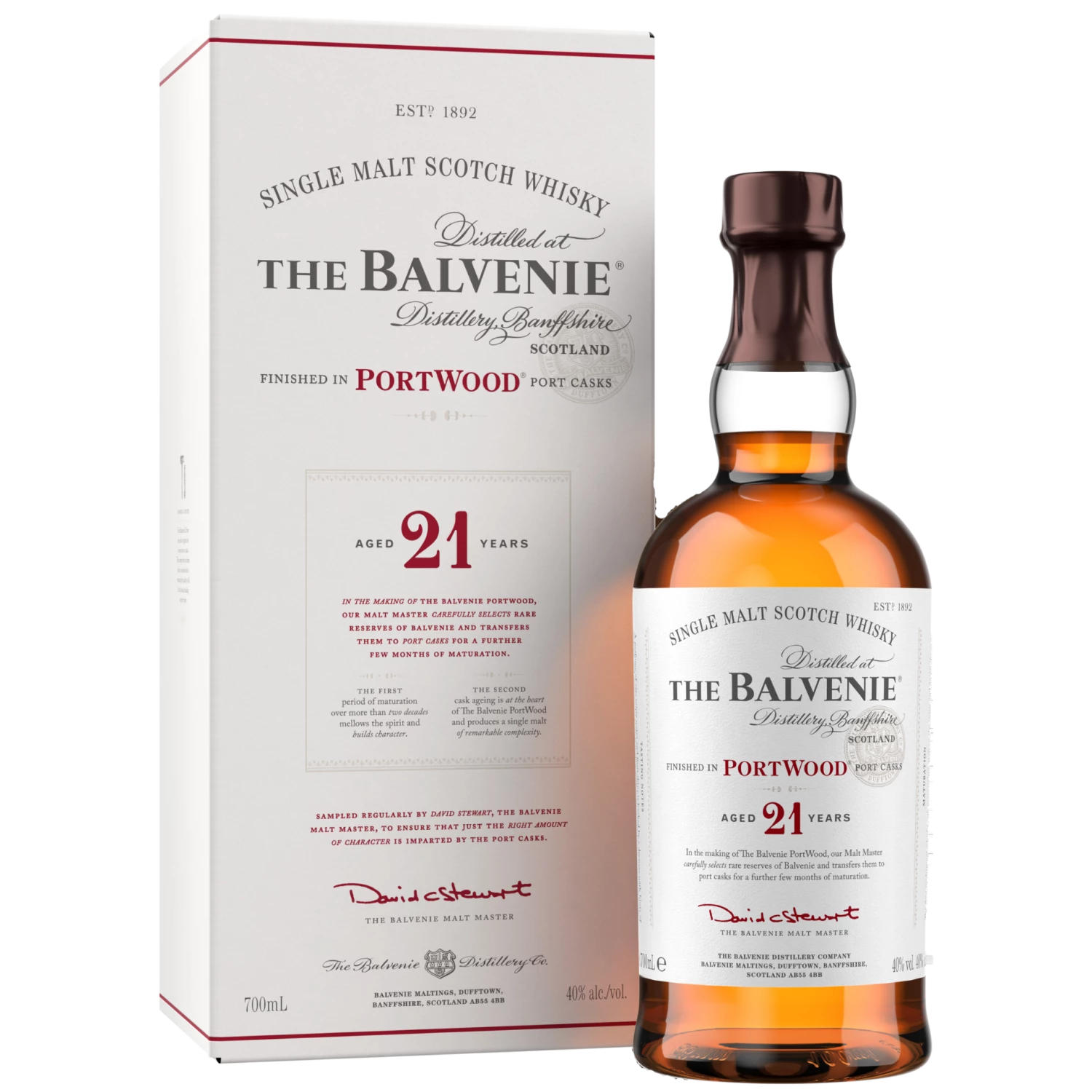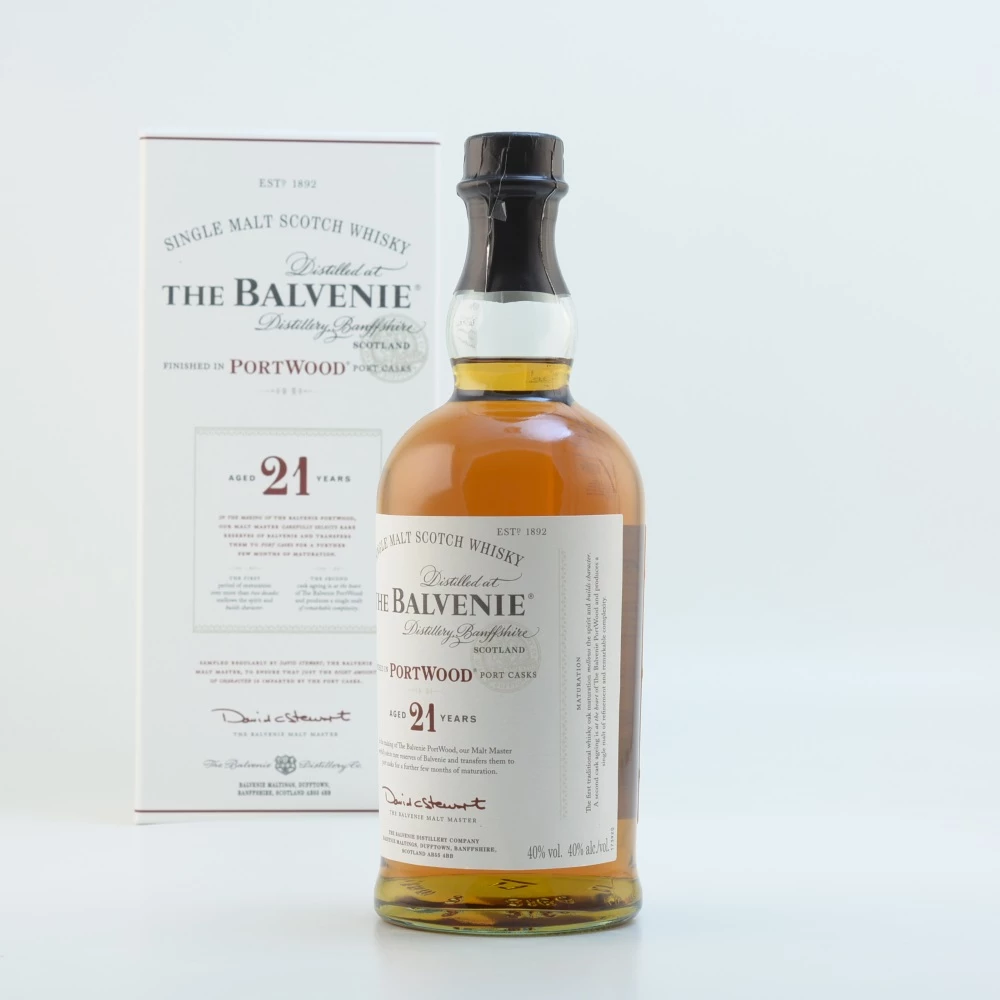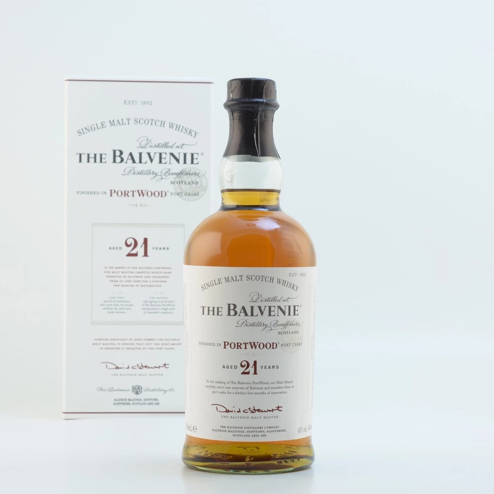 Zu den bekannten Destillerien, von denen feinster schottischer Whisky aus der Speyside erhältlich ist, gehört die Balvenie Distillery. Sie wurde 1892 von William Grant in der Nähe der Glenfiddich Distillery gegründet und genießt international einen guten Ruf. Der Produktionsstandort der Brennerei befindet sich in der Stadt Dufftown, die den Markt inzwischen mehr und mehr mit prämiertem Single Malt Scotch Whisky bereichert. In letzter Zeit hat sich der Betrieb unter der Leitung von William Grant & Sons mit spannenden Experimenten einen Namen gemacht. Dazu gehört der Balvenie 21 Jahre Portwood Speyside Whisky, der innerhalb der Port Wood Serie das prestigereiche Flaggschiff verkörpert.