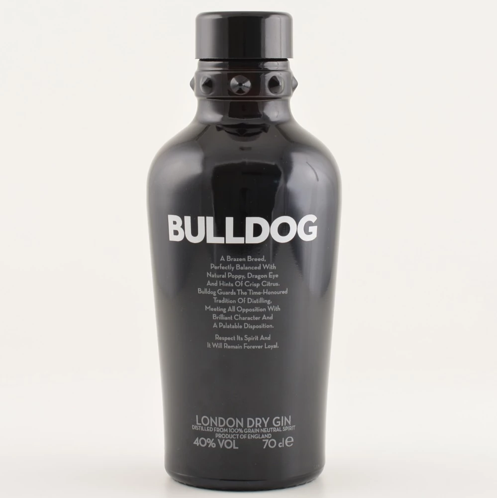 Der Gin wird in Kupferkesseln, den sogenannten „copper pot stills“, klassischen Destillierkesseln aus Kupfer, vierfach destilliert. Dieses Verfahren wird auch zur Produktion hochwertigen Whiskys angewendet. Der fertige Bulldog Gin wird abschließend noch einer Filterung mittels eines Spezialfilters unterzogen, dessen Poren gerade einmal 8 Micron groß sind. Das Ergebnis ist ein feiner Gin, der nicht nur einen unerwartet exotischen Geschmack hat, sondern sehr mild ist. Der Gin wird in einer 0,7-Liter-Flasche geliefert und hat einen Alkoholgehalt von 40 % vol. Er eignet sich hervorragend für Cocktails, kann aber auch pur getrunken werden.