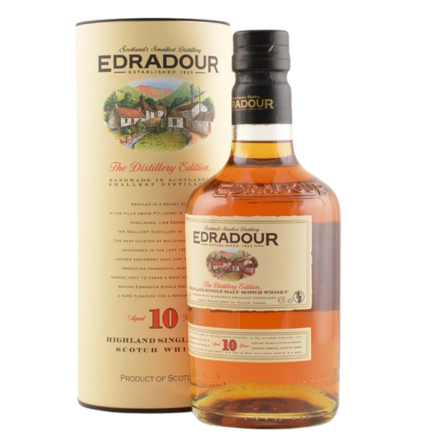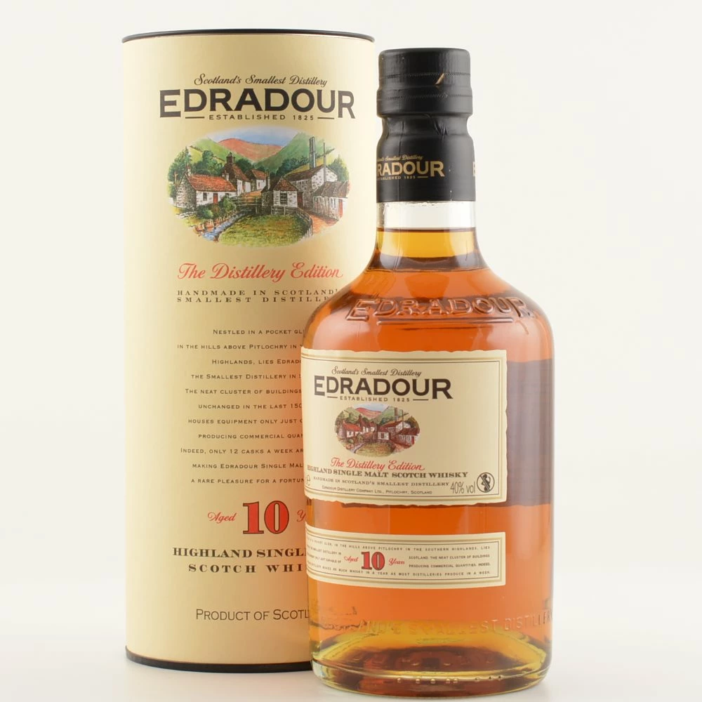 Whisky aus Schottland ist nach wie vor der angesagteste Whisky auf der ganzen Welt. Innerhalb wie außerhalb des Landes wird schottischer Whisky mit traditionellen Rezepturen, qualitativ hochwertigen Zutaten und höchstem Trinkgenuss in Verbindung gebracht. Wen wundert es auch, schafft Schottland doch mit seinen vielseitigen Landschaften und klimatischen Bedingungen einen guten Rahmen für diverse Whiskys, die alle ihre ganz eigene Note aufweisen. Vor allem in den Highlands und auf den schottischen Inseln wie Orkney und Islay haben viele anerkannte Destillerien ihren Sitz. So auch die Edradour Distillery, welche sich im 19. Jahrhundert in den südlicheren Highlands niederließ und seitdem für ausgezeichnete Whiskys sorgt. Eines ihrer Glanzprodukte ist der Edradour 10 Jahre.