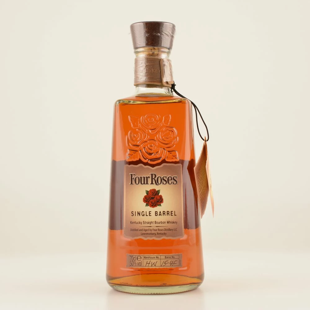 Anders als der Straight-Bourbon ist der Four Roses Single Barrel Whiskey ein Premium-Single-Whiskey, der einen Alkoholgehalt von 50 Volumprozent besitzt. Nach der aufwendigen Herstellung und Destillation ruht der Four Roses Single Barrel Whiskey sieben lange Jahre in erlesenen, frisch verkohlten Weißeichenfässern, bis er seine Reife vollendet hat. Auch nach der Ruhephase wird nicht jeder gereifte Whiskey als Four Roses Single Barrel Whiskey abgefüllt, sondern nur diejenigen davon, die einen besonders pikanten Geschmack und einen gut entwickelten Charakter haben. Jede Flasche wird in Handarbeit abgefüllt. Außerdem werden die Fassnummer und das Abfülldatum auf der Flasche dokumentiert.