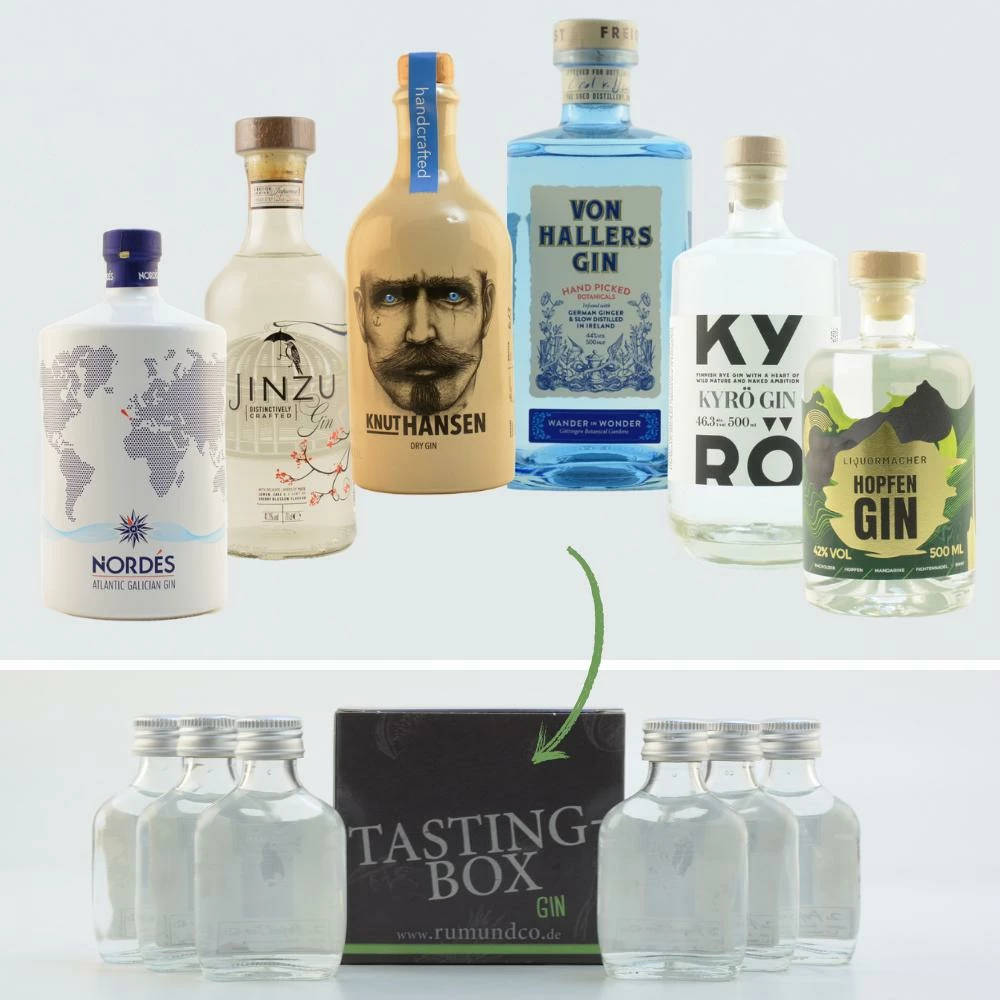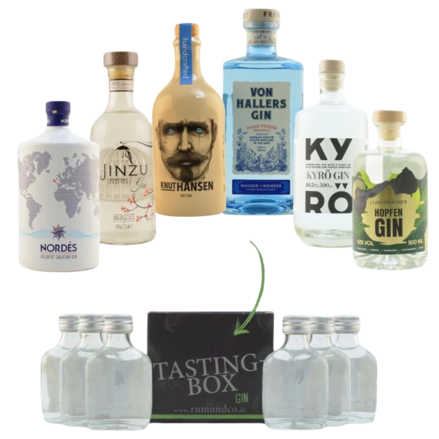 Vorbei sind die Zeiten, in denen Gin fast ausschließlich aus England kam. Heute ist er in ganz Europa weit verbreitet und wird sogar auf anderen Kontinenten immer mehr hergestellt. Das ist auch nicht weiter verwunderlich, denn schließlich schlummert ein riesiges Potenzial in der Spirituosen. Wacholderschnaps muss zwar mit Wacholderbeeren aromatisiert werden, aber davon abgesehen hat die Brennerei quasi freie Hand. Genau aus diesem Grund gibt es so unglaublich viel Abwechslung in dieser Spirituosenkategorie. Einen Einblick in die Faszination der Gin-Welt bietet das praktische Gin Tasting Set: Fortschritt Box Nr. 2. Es umfasst sechs Miniaturen, die unterschiedliche Stilrichtungen abdecken und für Abwechslung sorgen.