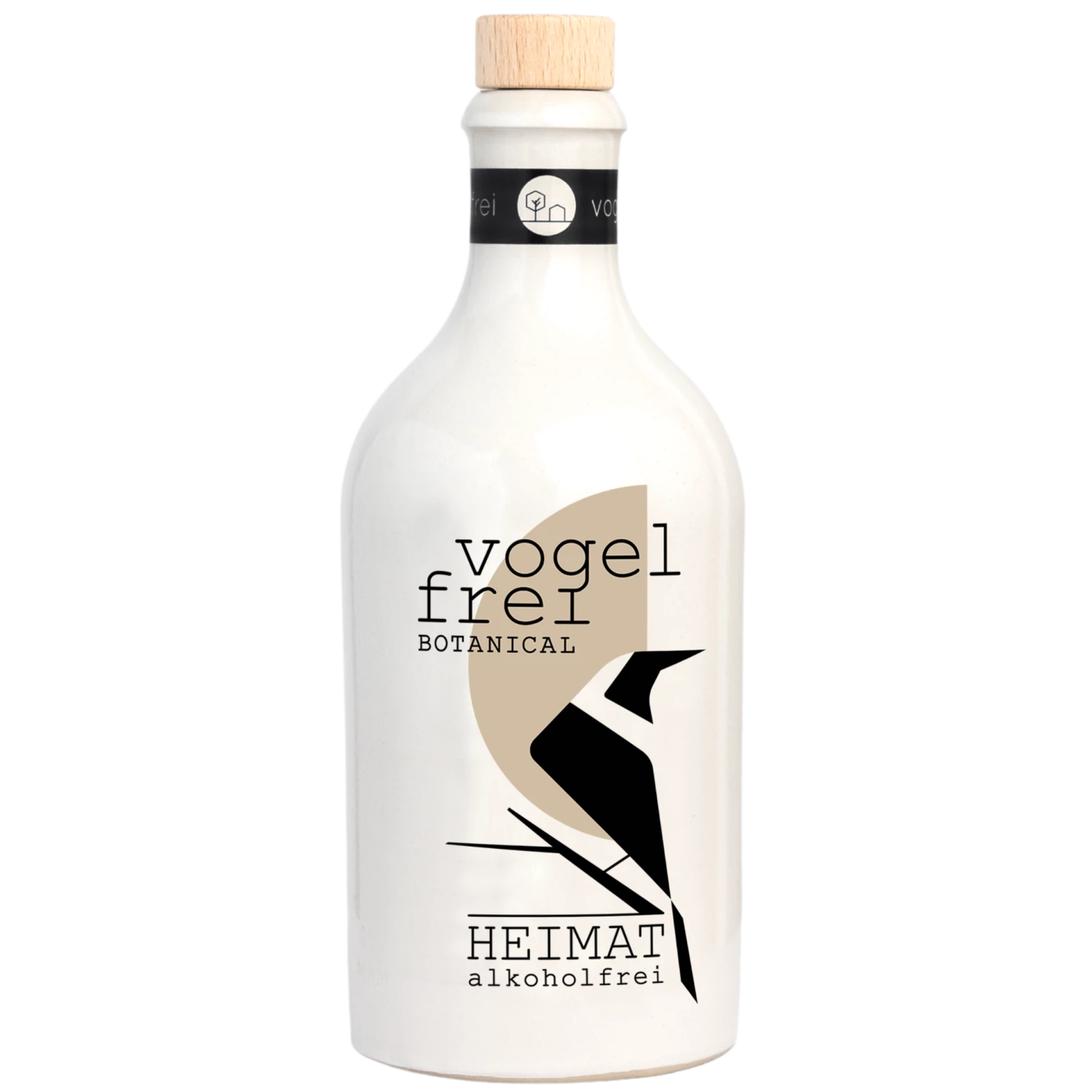 Der innovative Heimat Vogelfrei alkoholfreier Gin stammt aus dem Hause der Heimat Destillerie. Diese Firma ist unter der Leitung von Tastillery für ihre Experimentierfreude bekannt und bricht gern mit der Norm. In diesem Fall ist eine wunderbare Gin-Alternative entstanden, die ohne Volumenprozent zum Kunden kommt. Der alkoholfreie Gin aus Deutschland entstand, in dem sich die Brennerei auf eine schonende Wasserdampfdestillation der Botanicals verlassen hat. Das so entstandene Produkt wird vom Hersteller außerdem als kalorienarm und als vegan beworben. Die wunderschöne Keramikflasche in Weiß mit dem Vogelmotiv betont den heimatverbundenen Charakter der trendigen alkoholfreien Spirituose.