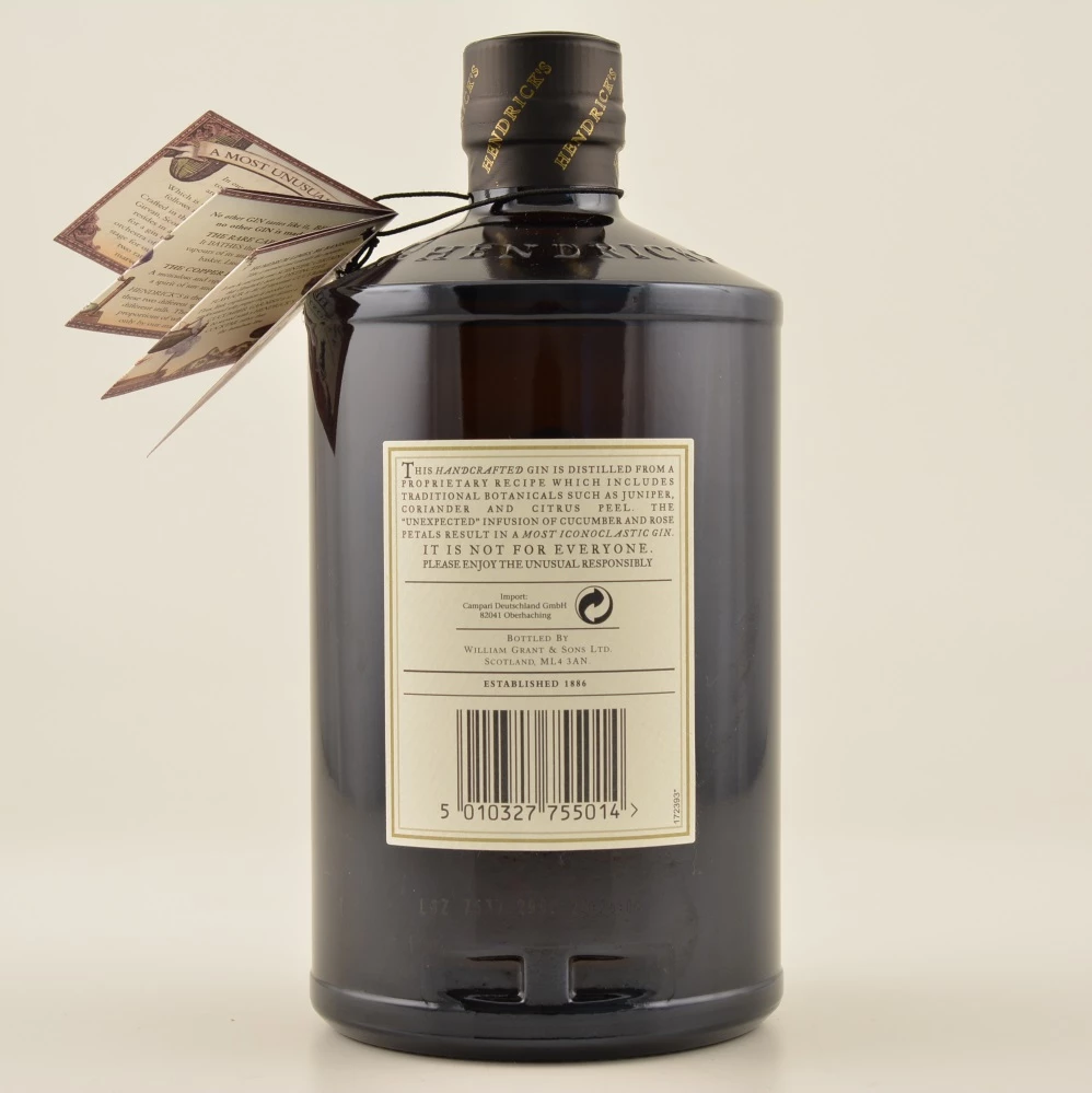An ihm scheiden sich die Geister. Manche Ginliebhaber lieben ihn, andere verabscheuen ihn. Auf jeden Fall erreicht die Destillerie mit ihrem Gin, dass über sie in Kennerkreisen heftig diskutiert wird. Man sollte diesen Gin am besten einmal selbst probieren, um sich ein Urteil bilden zu können. Schon bei der Herstellung von Hendrick’s Gin wird große Sorgfalt aufgewendet. Der Gin wird in zwei unterschiedlichen Stills produziert, von denen es nur noch wenige Exemplare auf der Welt gibt. Beide Stills produzieren Gin von unterschiedlichem Charakter. Die beiden Destillate werden verschnitten (blended) und ergeben den fertigen Gin. Viele Kenner scheinen den Gin aber zu lieben. Das Produkt erhielt mehrere international bedeutsame Auszeichnungen. Der Hersteller empfiehlt, den Gin mit Tonic auf Eis zu trinken und zur Garnierung Gurke zu benutzen. Der Gin wird in Flaschen, die Apothekerflaschen ähneln und 0,7 Liter Inhalt haben, angeboten. Der Alkoholgehalt beträgt 44 % vol.
