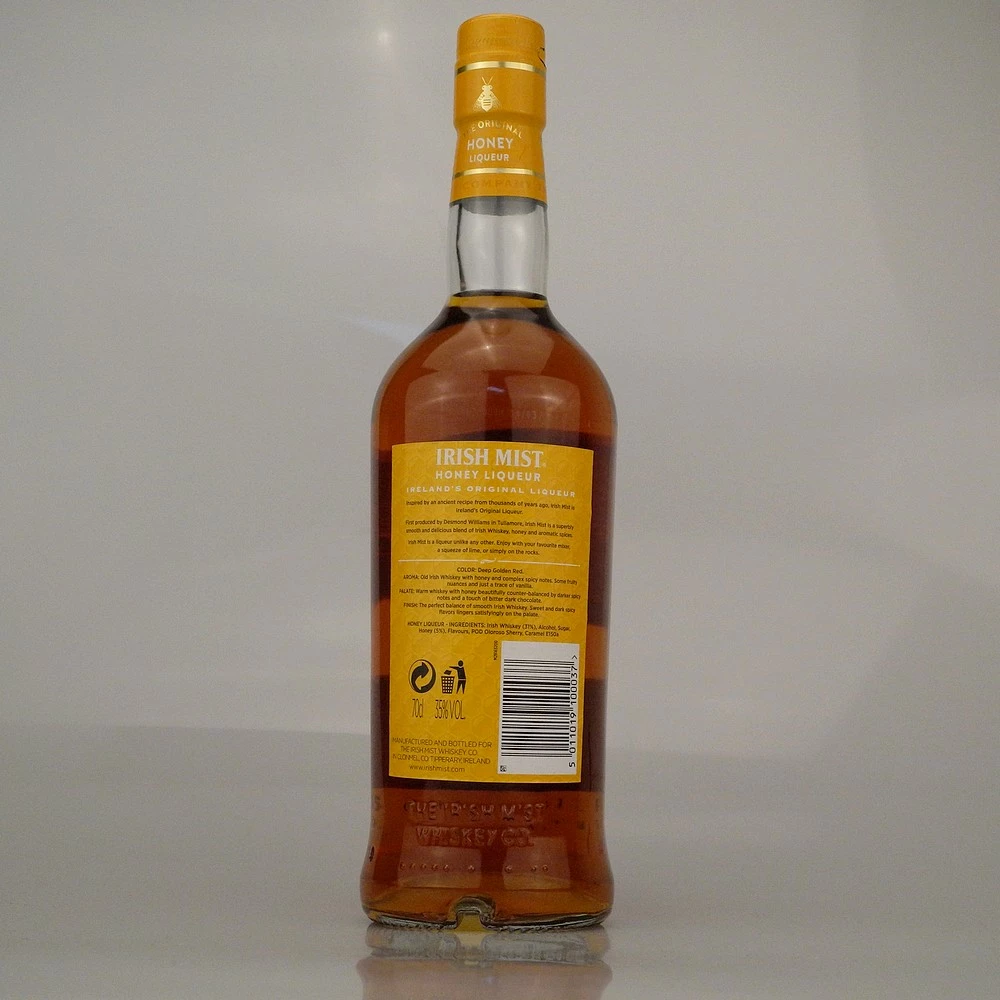 Der Irish Mist Whiskeylikör ist eine einzigartige Mischung aus irischem Whiskey, Gewürzen und Honig. On the Rocks oder gemischt mit Coca-Cola und Limetten entwickelt er sich zu einem beliebten Partygetränk mit unvergleichlichem Geschmack. Auch für einen Irish Coffee eignet er sich ausgezeichnet. Er ist der erste Likör, der in Irland produziert wurde, als 1947 die Produktion kommerzialisiert wurde. Die Firmengeschichte geht zurück bis 1829, als die Tullamore Destillerie gegründet wurde, um Whiskey herzustellen. In der Mitte der 1940er begann Desmond E. Williams nach einem ähnlichen, aber leicht abgewandelten Produkt zu forschen. So entstand schließlich der Irish Mist Whiskeylikör.