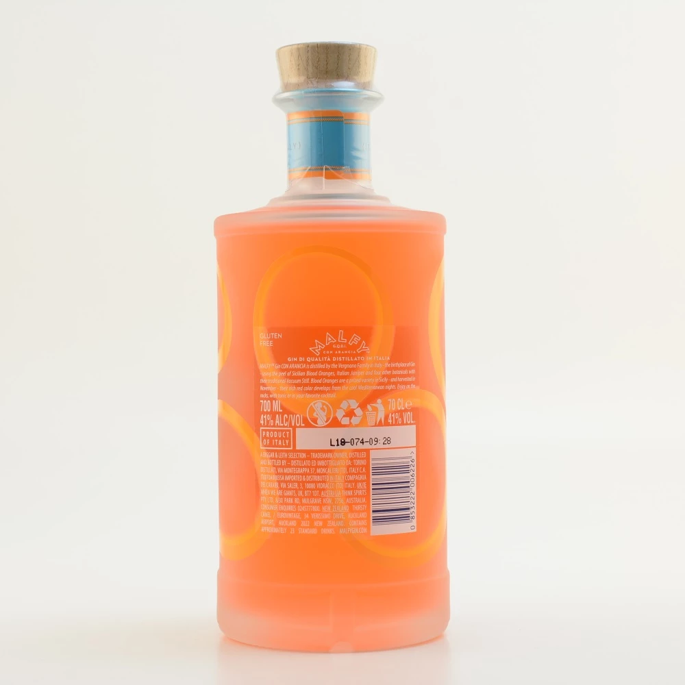 Der coole Malfy Gin Arancia – manchmal korrekt als Malfy Gin Con Arancia (mit Orange) vermarktet – wird mit viel Liebe zum Detail hergestellt. Er profitiert davon, dass nicht einfach irgendwelche Zitrusfrüchte zum Einsatz kommen, sondern dass es sich um sonnenverwöhnte, reife Blutorangen aus Sizilien handelt. Diese italienische Insel im Mittelmeer wird als Orangenlieferant (und Zitronenlieferant) geschätzt und hat sich u. a. mit Spirituosen wie dem Limoncello einen Namen gemacht. Statt der Limone spielt beim Malfy Gin Arancia die Orange die Hauptrolle, gemeinsam mit den obligatorischen Wacholderbeeren. Der italienische Gin weist passenderweise einen Farbton von leuchtendem, feurigem Orange auf, wobei Blutorangen ja eigentlich noch dunkler und roter sind.