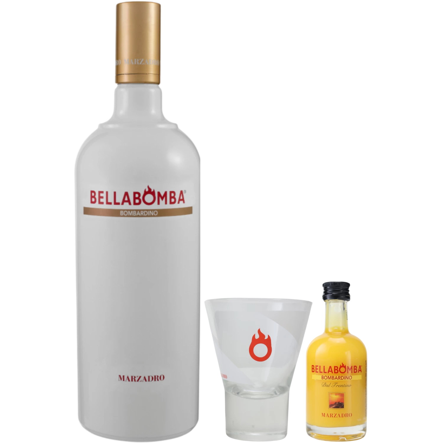 Marzadro Bellabomba Eierlikör 17% 1l + Eierlikör Mini & Marzadro Glas 4cl