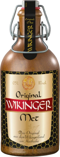 Den Original Wikinger Met im Tonkrug erhält man zum fairen Preis, was seine Qualität noch unterstreicht. Er ist ein wahrer Blickfang in jeder Hausbar und macht außerdem als einfallsreiches Geschenk eine exzellente Figur. Das auf dem Tonkrug befestigte Etikett mit rotem und goldenem Aufdruck auf schwarzem Hintergrund zieht viel – redlich verdiente – Aufmerksamkeit auf sich. Das Logo ist einem imposanten Wikingerschiff nachempfunden. Mit einem Inhalt von 0,5 l und einem alkoholischen Trinkgehalt von 11 % vol. empfiehlt sich der Original Wikinger Met im Tonkrug für die speziellen Momente des Lebens. Der anregende, süße und geschmeidige Met mundet in guter Gesellschaft doppelt so gut. Hat man ihn bereits lieb gewonnen, ist der Griff zum Roten Met von Behn ans Herz zu legen.