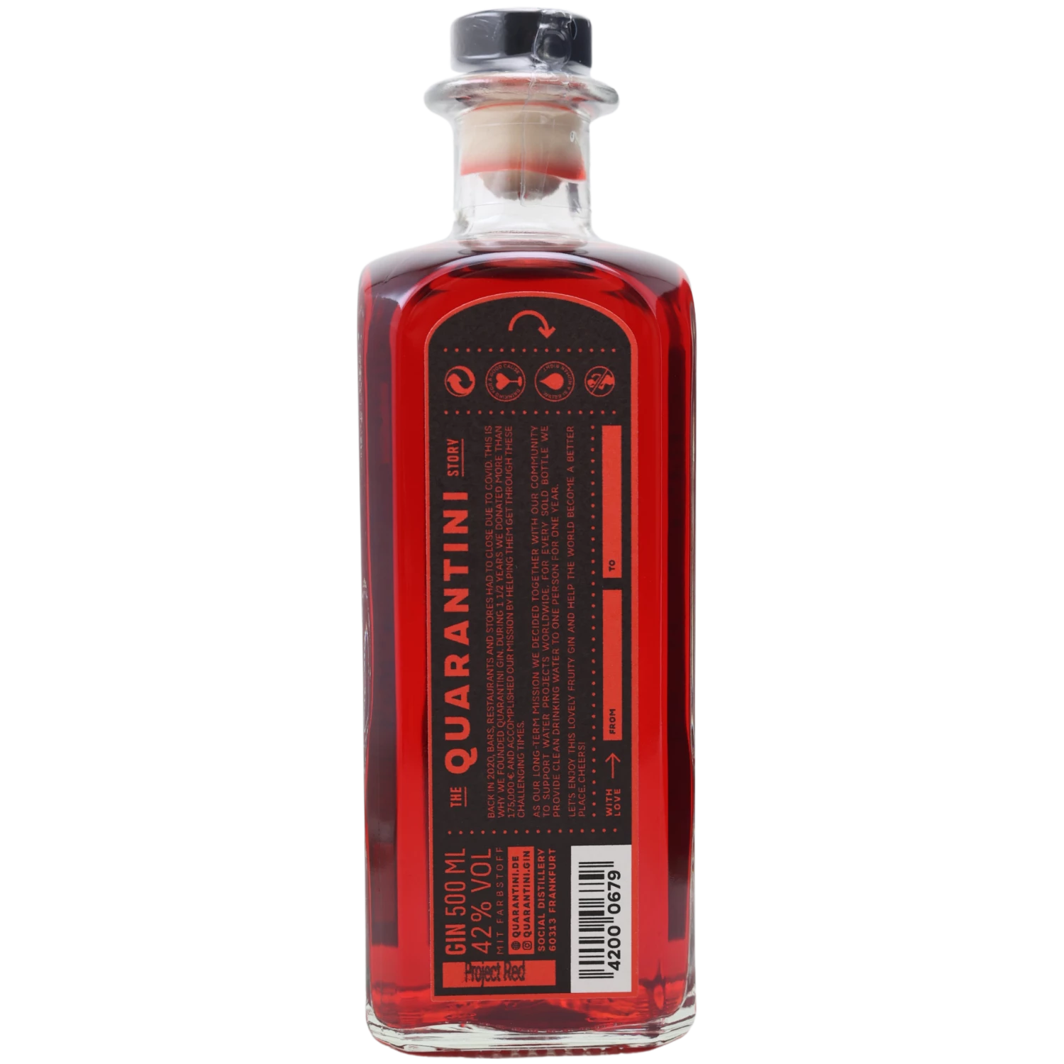 Der innovative Quarantini Red Edition Gin kommt in Rot zum Kunden und rückt sich damit in den Mittelpunkt der Aufmerksamkeit. Auf den ersten Blick könnte man ihn mit Sloe Gin vergleichen, denn dieser mit Schlehenbeeren verfeinerter Ginlikör zeigt sich ebenfalls von der roten Seite. Das Erfolgsgeheimnis dieser spannenden Neuheit sind jedoch andere Zutaten. So hat sich das Team für zusätzliche Botanicals entschieden, die den trendigen Quarantini Red Edition Gin von seinen Vorläufern unterscheiden: Auf der einen Seite gibt er sich ausgesprochen fruchtig dank Granatapfel und Pfirsich. Auf der anderen Seite hat man sich auf Holunderblüten verlassen und unterstützt damit den floralen Eindruck von Kirschblüten. Zitronengras und Zitronen aus Sizilien gesellen sich ebenso dazu wie diverse Gewürze und Kräuter sowie selbstverständlich Wacholderbeeren. Sowohl in aromatischer und geschmacklicher, als auch in optischer Hinsicht hat der Trendsetter daher viel zu bieten. Er präsentiert sich als limitierter Gin, der laut Hersteller von den Goldenen Zwanzigern mit rauschenden Partys und eleganten Parfüms inspiriert wurde. Als Social Gin unterstützt die Limited Edition wie ihre Vorgänger gemeinnützige Zwecke.