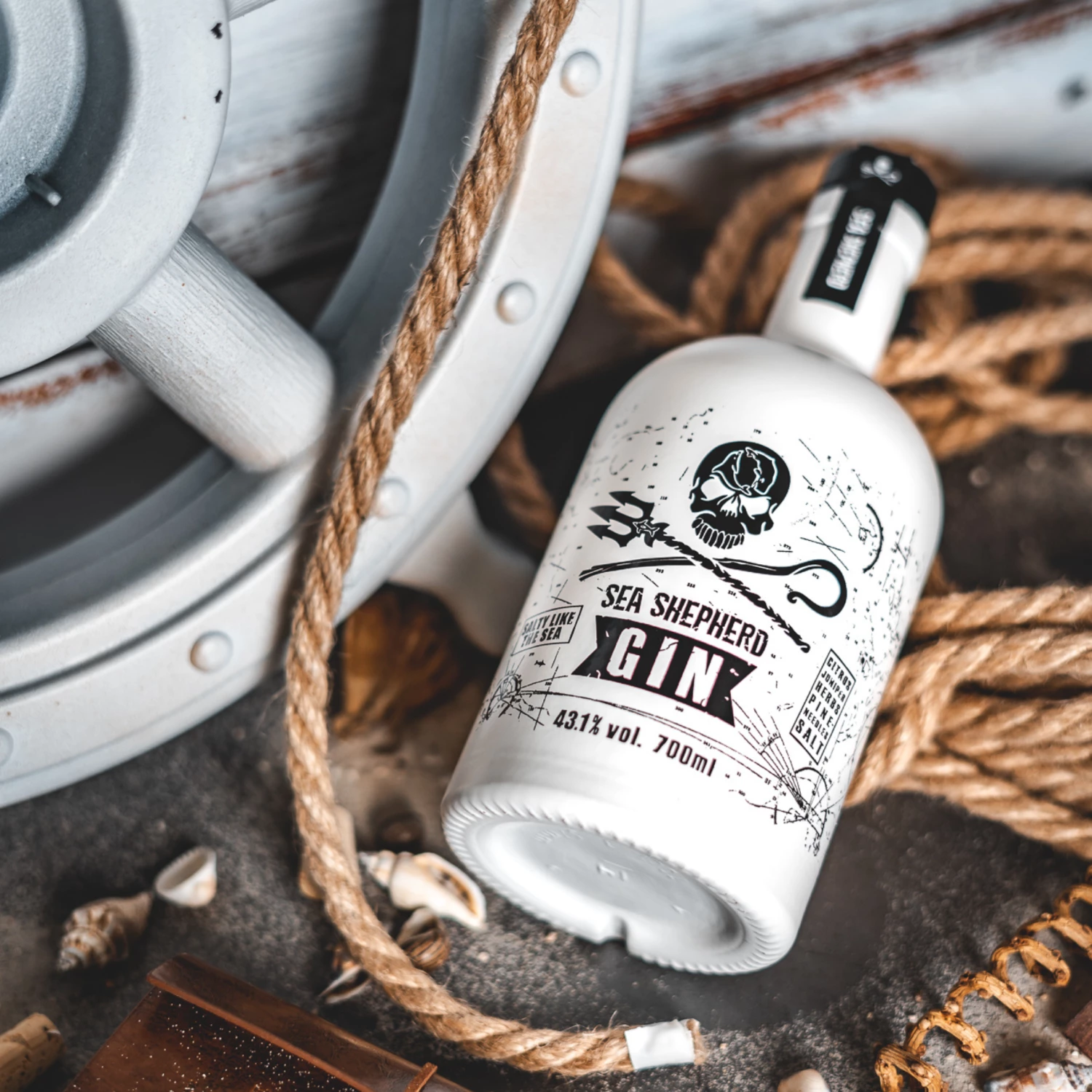 Der innovative Sea Shepherd Gin soll den Umwelt-Piraten und ihrem Wagemut Tribut zollen und zudem das offene Meer mit all seiner speziellen Flora und Fauna. Er ehrt das Engagement der Umweltschützer, die sich z. B. gegen Walfang einsetzen. Wer den Kampf um die Weltmeere unterstützen will, ist mit dem Sea Shepherd Gin an der richtigen Stelle. Sein maritimer Charakter erinnert fast ein wenig an schottischen Inselwhisky von den Hebriden. Der klare Wacholderschnaps mit sorgsam ausgewählten Botanicals tanzt aus der Reihe, ohne zu andersartig zu sein.
