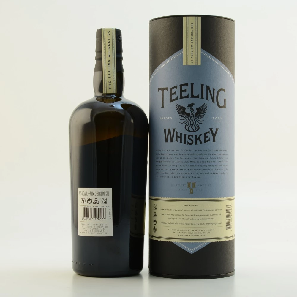 Die Lagerung in drei unterschiedlichen Fasstypen ist am Teeling Irish Pot Still Whiskey nicht spurlos vorbei gegangen. Sowohl im Aroma als auch im Geschmack hat er so einiges zu bieten. Die Süße von Vanille kontrastiert mit Zitrusfrüchten, Beeren und Marmelade. Beiklänge von Karamell, Gewürzen und Holz schwingen mit. Florale bis herbale Nuancen machen das Trinkerlebnis noch interessanter. Vom reichhaltigen, ausdruckstarken Teeling Irish Pot Still Whiskey gab es ursprünglich nur 6.000 Flaschen in der ersten Auflage.